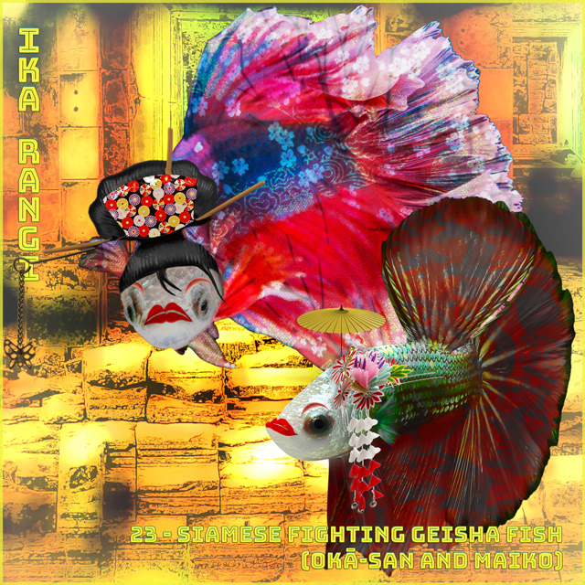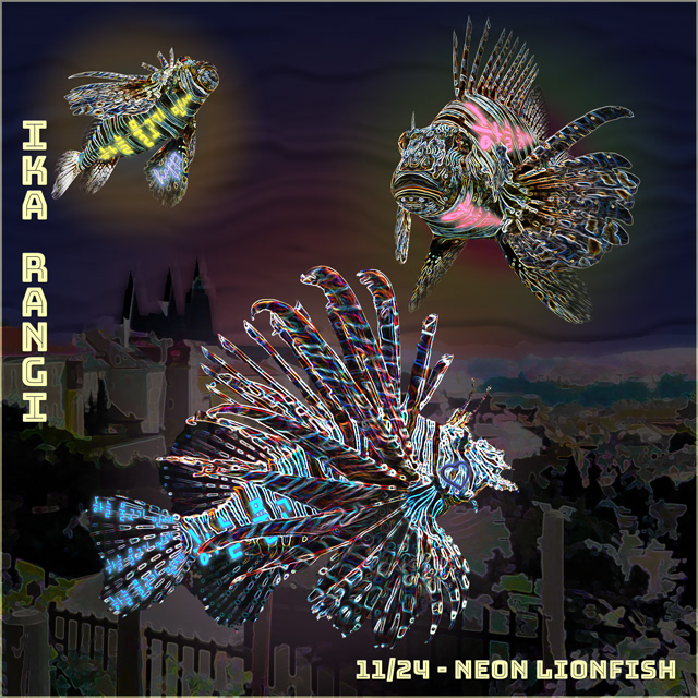 The Ika Rangi series is a collection of 24 of the rarest mythical and mystical Sky Fish (Ika Rangi) still in existence. The series collection is taken from my 24 layer / 24 hour aSync.art project. Also 100 of each are available at opensea.io/aliasrubytuesday.